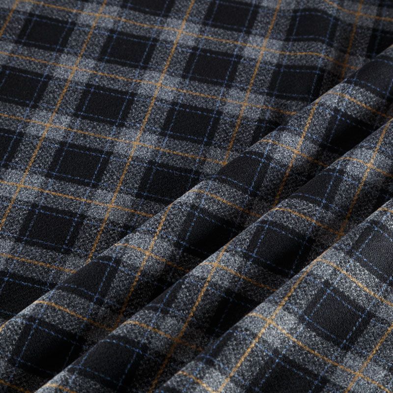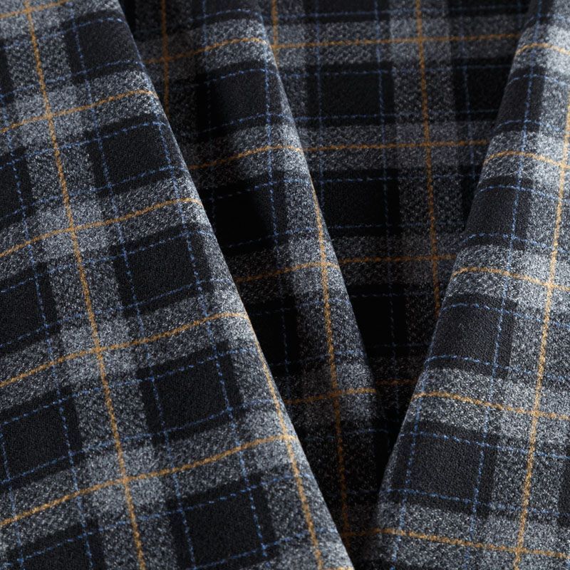 Фактурная и плотная твидовая ткань с добавлением хлопка в красивую серо-черную клетку с тонкими цветными полосками. Ткань мягкая, пластичная, приятная на ощупь. Хорошо драпируется и образует формоустойчивые складки. Твид отлично подходит для пошива костюмов, пальто, пиджаков, брюк и курток, юбок, жилетов, головных уборов в классическом стиле.