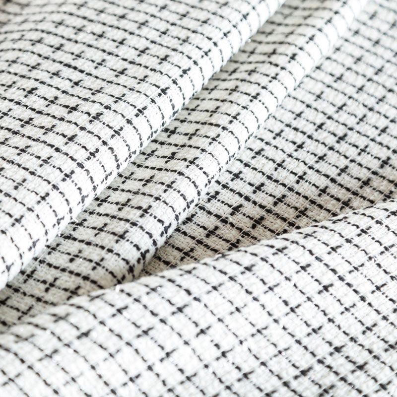 Мягкая, пластичная и объемная ткань, с разреженной и рельефной вывязанной структурой. Буклированный твид в стиле Шанель буквально соткан из различных по толщине и текстуре нитей, образующих рисунок в виде клетки. Твид идеально подходит для пошива платьев, юбок, жакетов, легких пальто, эффектных бомберов и курток.