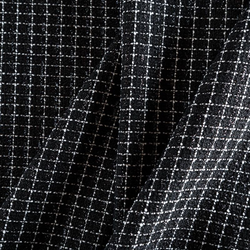 Мягкая, пластичная и объемная ткань, с разреженной и рельефной вывязанной структурой. Буклированный твид в стиле Шанель буквально соткан из различных по толщине и текстуре нитей, образующих рисунок в виде клетки. Твид идеально подходит для пошива платьев, юбок, жакетов, легких пальто, эффектных бомберов и курток.
