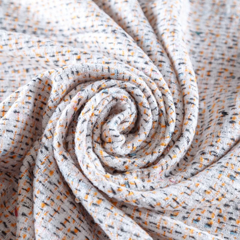 Итальянская мягкая, пластичная и объемная ткань с рельефной структурой. Твид в стиле Шанель буквально соткан из различных по толщине, текстуре и цвету нитей, образующих рисунок в виде клетки и декорирован мелкими пайетками. Твид идеально подходит для пошива платьев, юбок, жакетов, легких пальто, эффектных бомберов и курток.