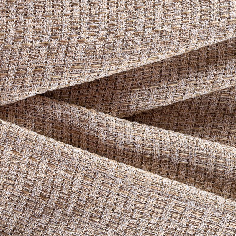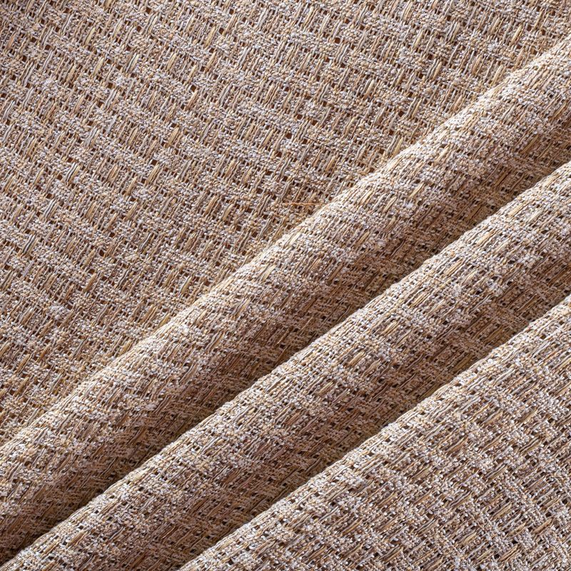 Отличительная особенность этой ткани в полотняном плетении нитей, характерного для рогожки, олицетворяющая сложную "клетчатую" геометрию в бежево-молочных оттенках. Различная толщина нитей создает эффектную фактуру. Ткань достаточно формоустойчивая, при этом пластичная, гибкая за счет плетения,  матовая, мягкая, приятная на ощупь, не рыхлая. Прекрасно подойдет для пошива жакета, юбки в виде трапеции, легкого пальто, костюма.