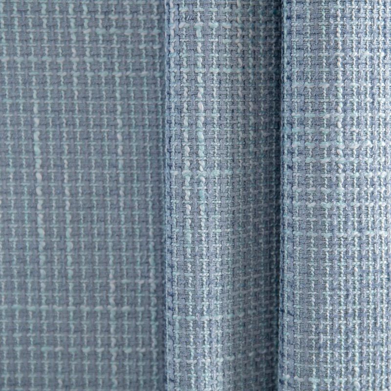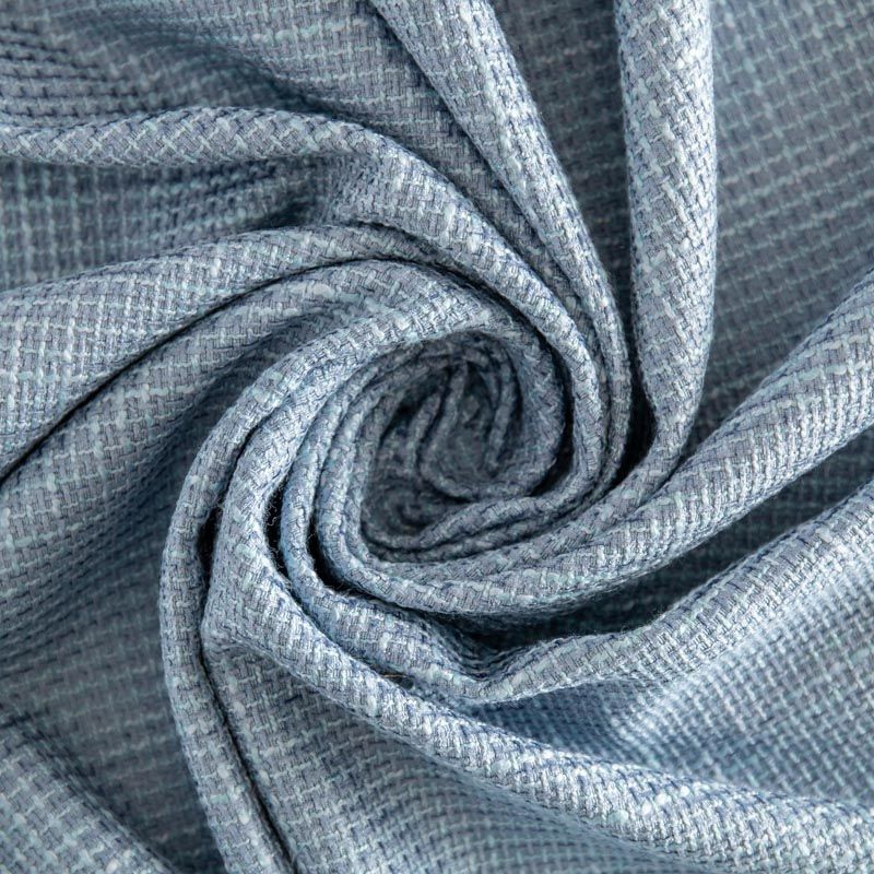 Отличительная особенность этой ткани в полотняном плетении нитей, характерного для рогожки, олицетворяющая сложную "клетчатую" геометрию в нежных голубых оттенках. Различная толщина нитей создает эффектную фактуру. Ткань достаточно формоустойчивая, при этом пластичная, гибкая за счет плетения, матовая, мягкая, приятная на ощупь, не рыхлая. Прекрасно подойдет для пошива жакета, юбки в виде трапеции, легкого пальто, костюма.