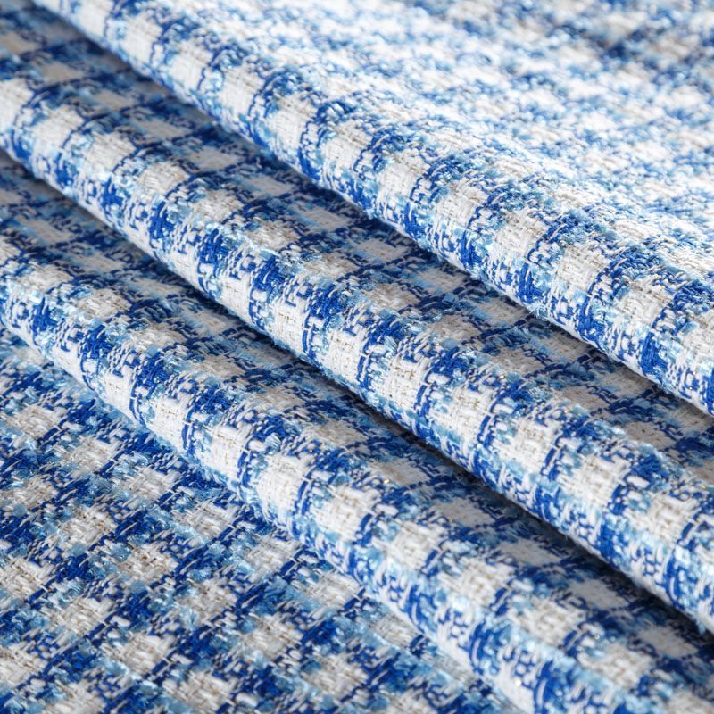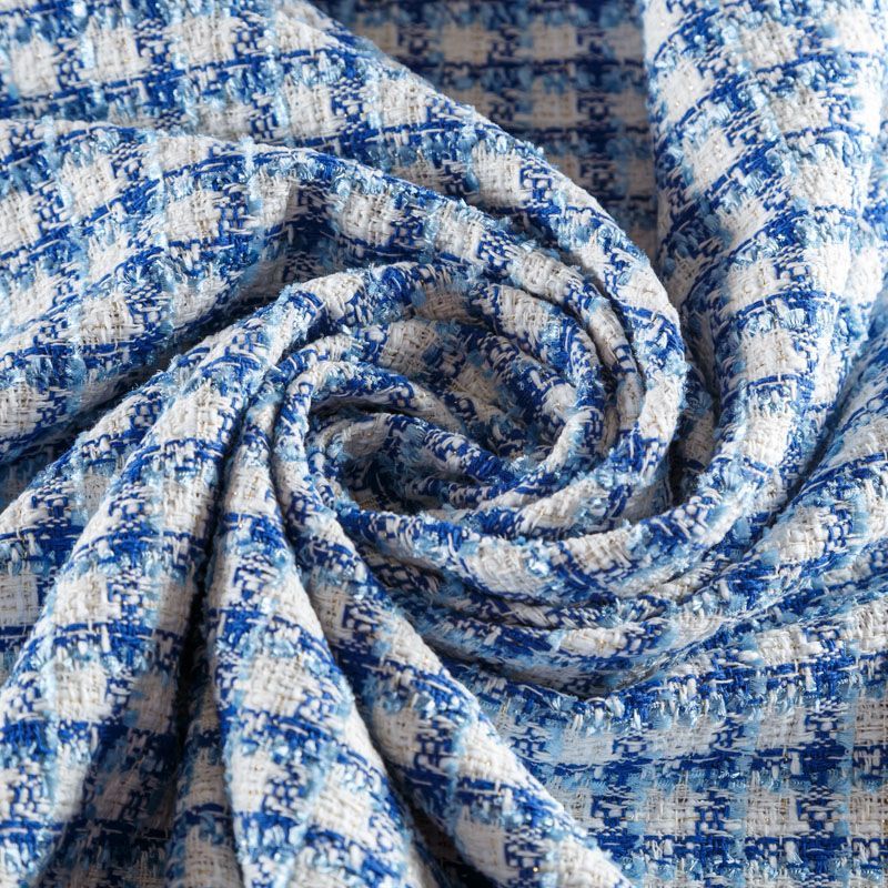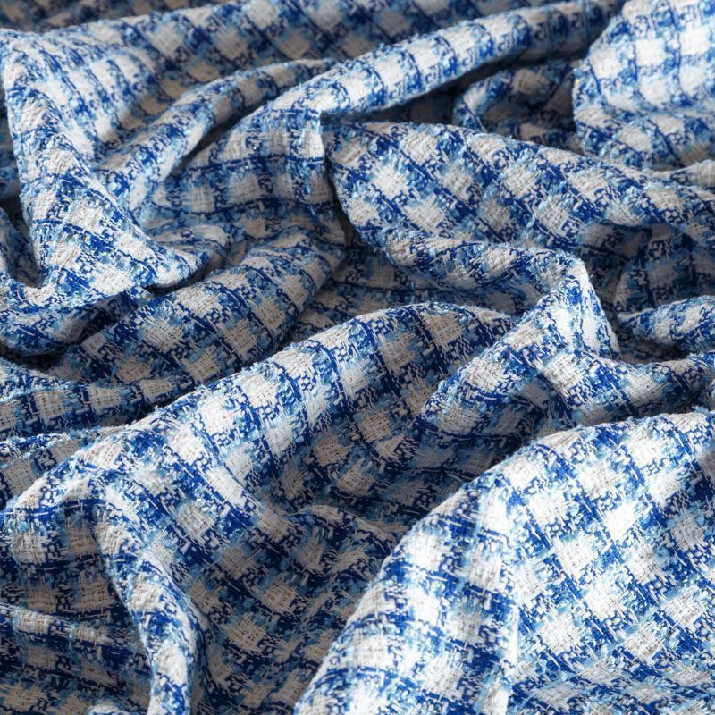 Мягкая, пластичная и объемная ткань, с разреженной и рельефной вывязанной структурой. Буклированный твид в стиле Шанель буквально соткан из различных по толщине и текстуре нитей, образующих рисунок в виде клетки. В плетение добавлена блестящая люрексная нить. Твид идеально подходит для пошива платьев, юбок, жакетов, легких пальто, эффектных бомберов и курток.
