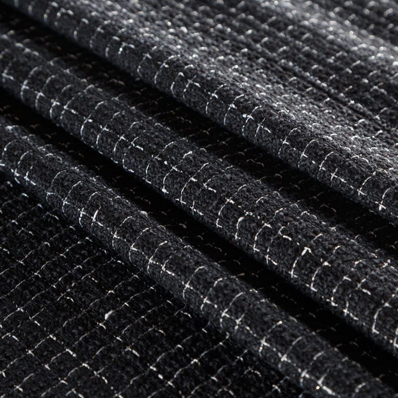 Мягкая, пластичная и объемная ткань, с разреженной и рельефной вывязанной структурой. Буклированный твид в стиле Шанель буквально соткан из различных по толщине и текстуре нитей, образующих рисунок в виде клетки. В плетение добавлена блестящая люрексная нить. Твид идеально подходит для пошива платьев, юбок, жакетов, легких пальто, эффектных бомберов и курток