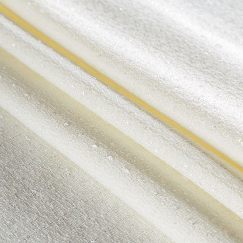 Твид средней плотности с рельефной поверхностью молочного оттенка с добавлением акцента в виде люрексовой нити, которая имитирует клетку и добавляет ткани нарядности. Твид пластичный, хорошо драпируется, умеренно держит форму, прекрасно подойдет для пошива жакетов на подкладе, жилетов, кардиганов, легких пальто, юбок и платьев.