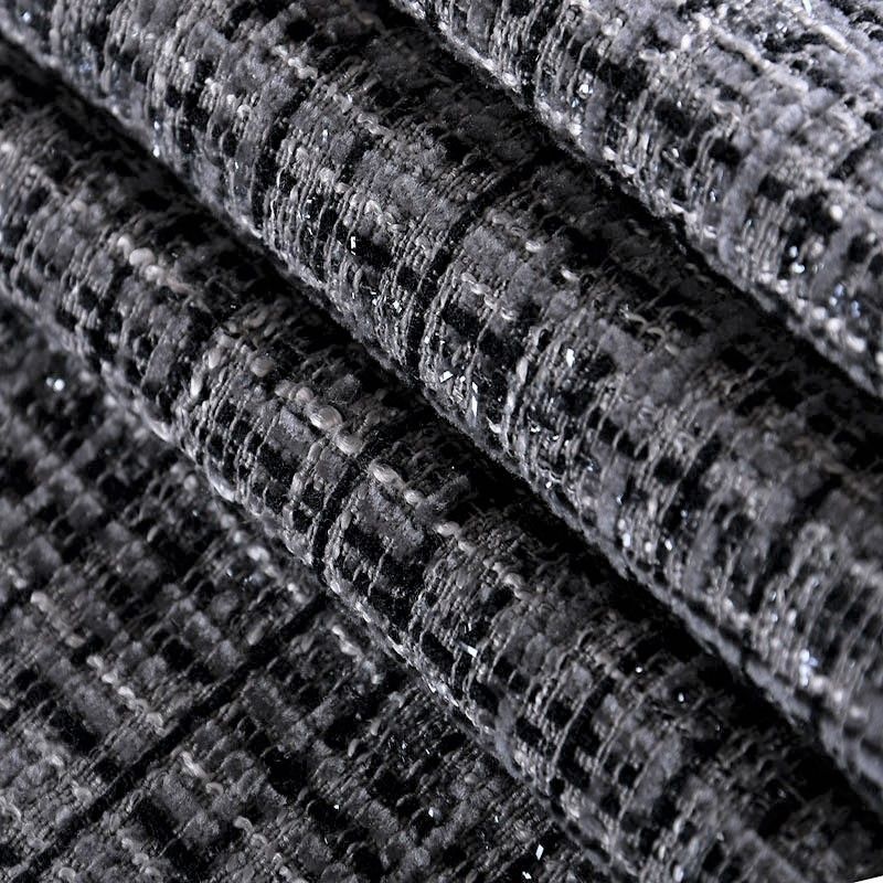 Мягкая, пластичная и объемная ткань, с разреженной и рельефной вывязанной структурой. Буклированный твид в стиле Шанель буквально соткан из различных по толщине и текстуре нитей, образующих рисунок в виде клетки. В плетение добавлена блестящая люрексная нить. Твид идеально подходит для пошива платьев, юбок, жакетов, легких пальто, эффектных бомберов и курток.