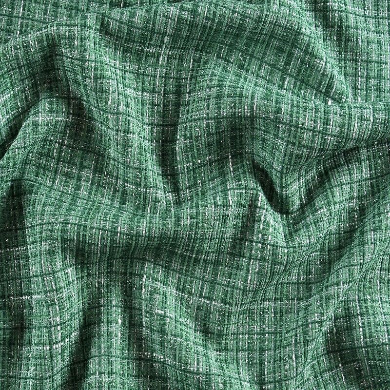 Мягкая, пластичная и объемная ткань, с разреженной и рельефной вывязанной структурой. Буклированный твид в стиле Шанель буквально соткан из различных по толщине и текстуре нитей, образующих рисунок в виде клетки. В плетение добавлена блестящая люрексная нить. Твид идеально подходит для пошива платьев, юбок, жакетов, легких пальто, эффектных бомберов и курток.