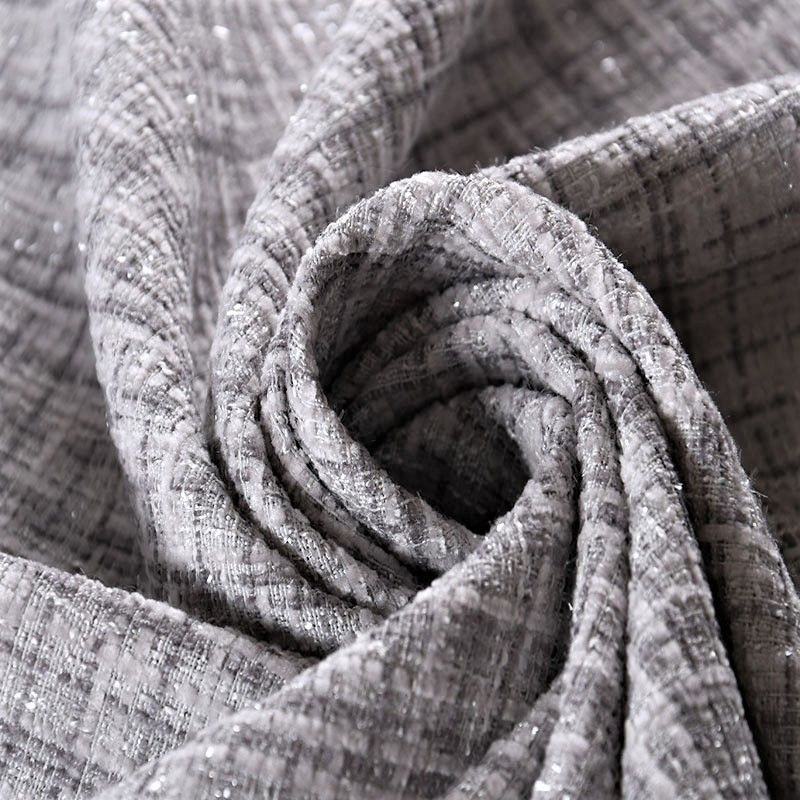 Мягкая, пластичная и объемная ткань, с разреженной и рельефной вывязанной структурой. Буклированный твид в стиле Шанель буквально соткан из различных по толщине и текстуре нитей, образующих рисунок в виде клетки. В плетение добавлена блестящая люрексная нить. Твид идеально подходит для пошива платьев, юбок, жакетов, легких пальто, эффектных бомберов и курток.