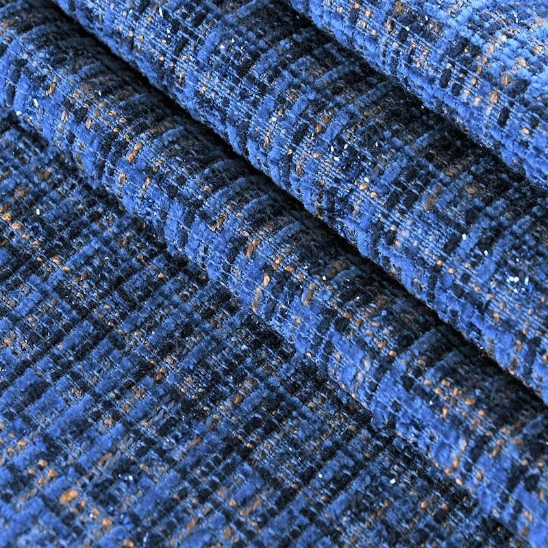 Мягкая, пластичная и объемная ткань, с разреженной и рельефной вывязанной структурой. Буклированный твид в стиле Шанель буквально соткан из различных по толщине и текстуре нитей, образующих рисунок в виде клетки. В плетение добавлена блестящая люрексная нить. Твид идеально подходит для пошива платьев, юбок, жакетов, легких пальто, эффектных бомберов и курток.