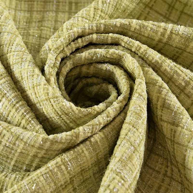 Мягкая, пластичная и объемная ткань, с разреженной и рельефной вывязанной структурой. Буклированный твид в стиле Шанель буквально соткан из различных по толщине и текстуре нитей, образующих рисунок в виде клетки. В плетение добавлена блестящая люрексная нить. Твид идеально подходит для пошива платьев, юбок, жакетов, легких пальто, эффектных бомберов и курток.