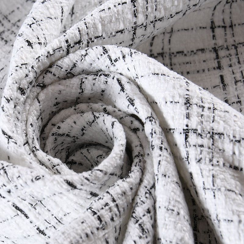 Мягкая, пластичная и объемная ткань, с разреженной и рельефной вывязанной структурой. Буклированный твид в стиле Шанель буквально соткан из различных по толщине и текстуре нитей, образующих рисунок в виде клетки. В плетение добавлена блестящая люрексная нить. Твид идеально подходит для пошива платьев, юбок, жакетов, легких пальто, эффектных бомберов и курток.
