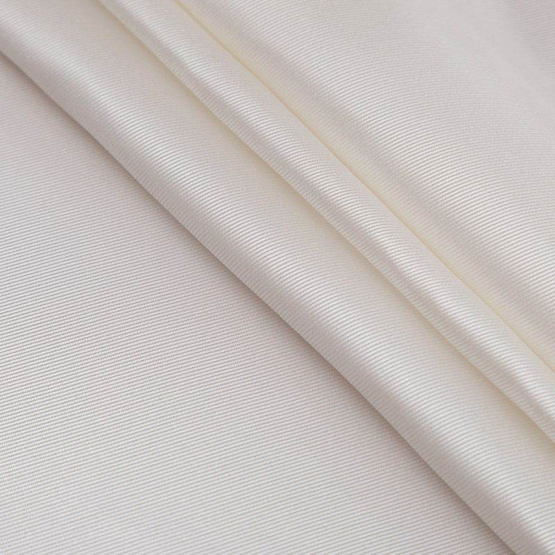 Итальянский шёлковый твил жемчужного оттенка из коллекции Hermes. Диагональное саржевое плетение. Ткань средней плотности, лёгкая, гладкая и шелковистая на ощупь с лицевой и изнаночной стороны. Не просвечивается, не эластичная, малосминаема. Прекрасно драпируется тонкими округлыми вислыми складками, эффектно смотрится в крое по косой. Шёлковый твил прекрасно подходит для пошива платьев полуприлегающих и свободных форм с драпировками и без, костюмов в пижамном стиле, юбок, мужских и женских рубашек с длинными и короткими рукавами, женских и детских сарафанов, туник, шейных платков и палантинов.