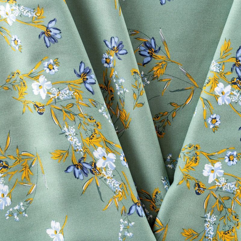 Твил-штапель 069-01573 полынный зеленый принтованный