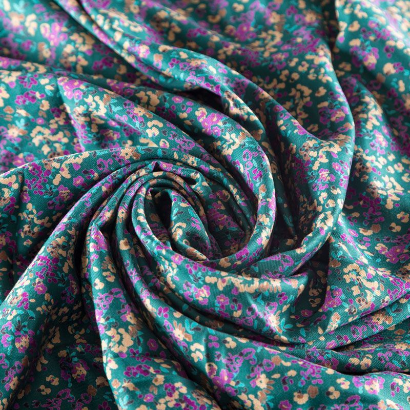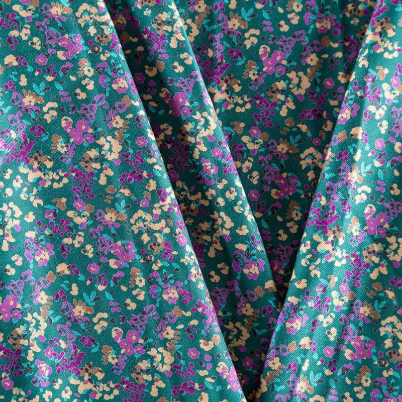 Твил-штапель 069-04017 темно-бирюзовый принтованный