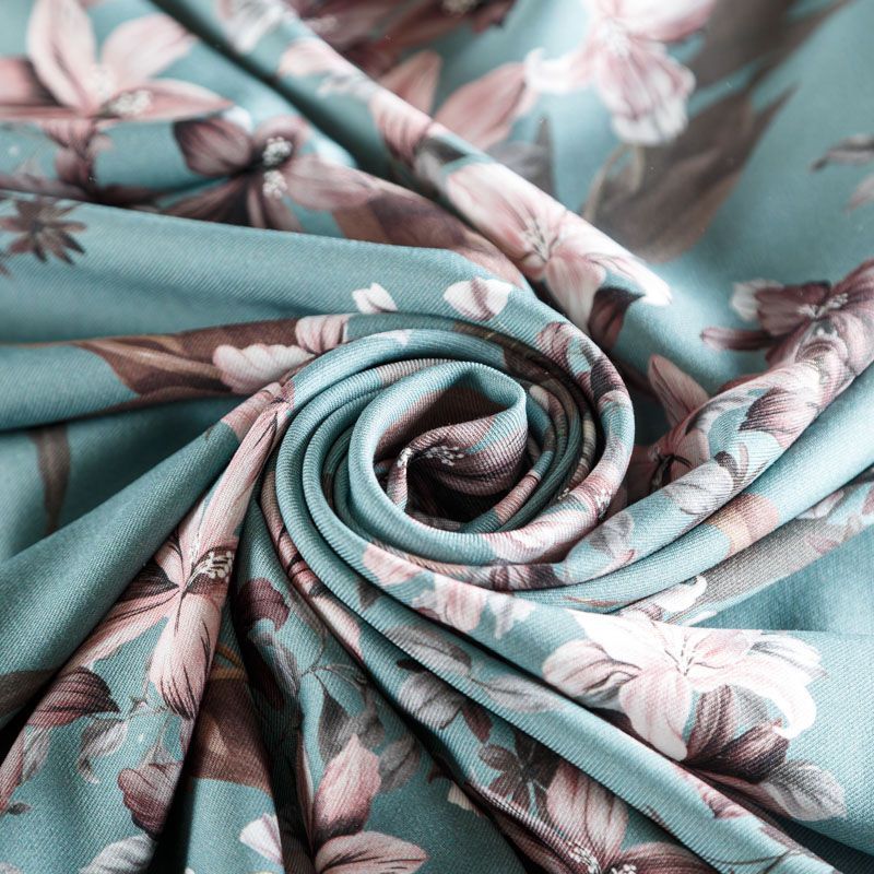 Твил-штапель 069-06479 серо-бирюзовый принтованный в Ухте