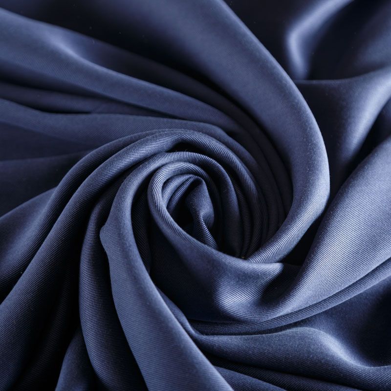 Плотная и мягкая ткань, имеет саржевое плетение и характерный диагональный рубчик на поверхности. Отлично сохраняет форму, не сильно мнется и не деформируется в процессе эксплуатации.  Красиво ложится в складки, поэтому прекрасно подойдет на длинные драпированные юбки и платья, на свободные брюки или шорты, блузки, рубашки или топы.