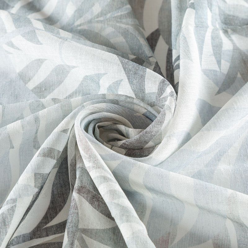 Полупрозрачная тюлевая ткань под лен с выразительной матовой рельефной поверхностью со стилизованным растительным принтом в серой гамме выглядит очень натурально и естественно. Красиво смотрится на любом карнизе и прекрасно подойдет для оформления различных помещений. Может использоваться как самостоятельно, так и в комплекте с плотными шторами. Нижний край оформлен утяжелителем.