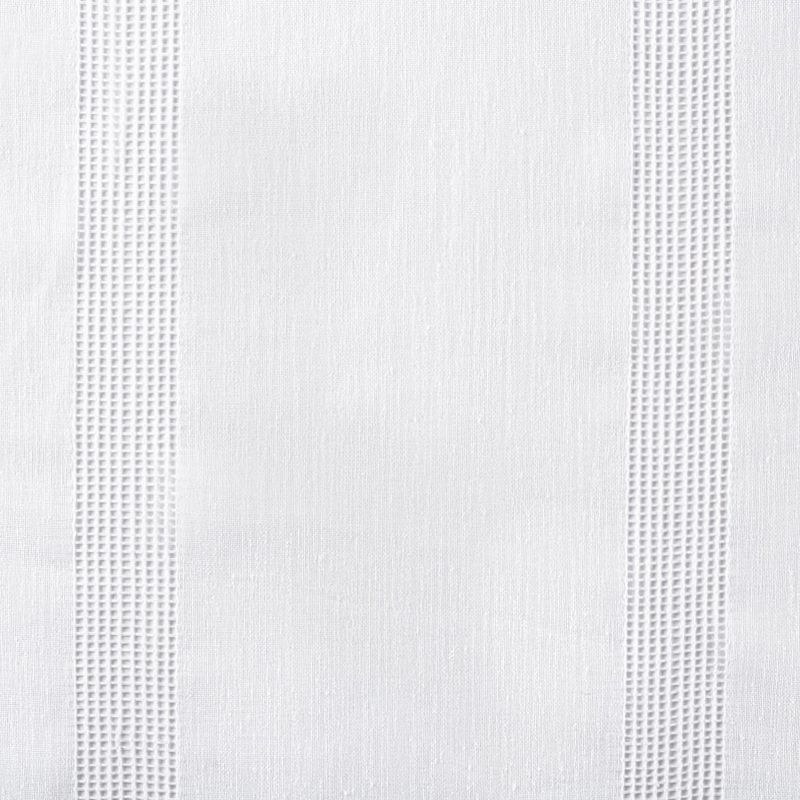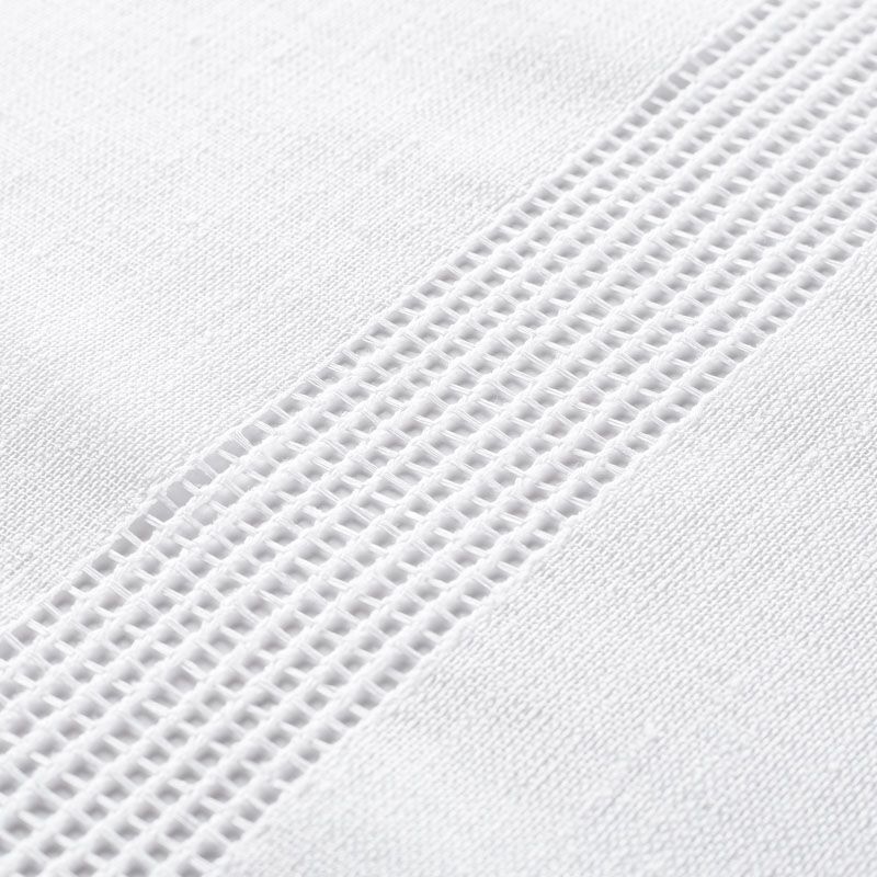 Тюль имитирующий текстуру натурального льна декорирован горизонтальной мережкой, расположенной по всей высоте ткани.