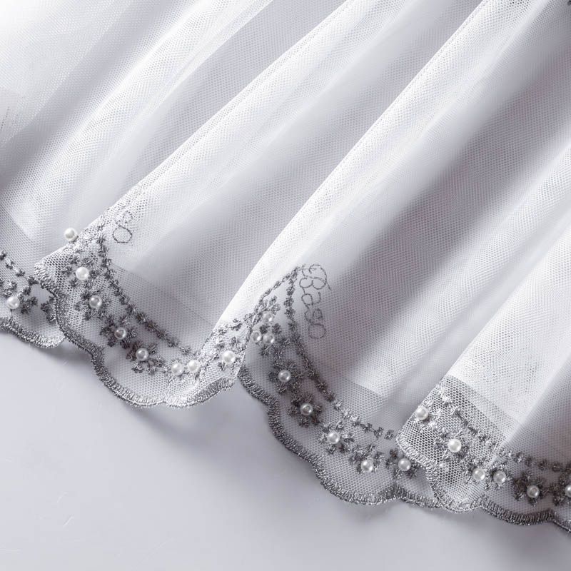 Сетка с вышивкой – это роскошный элемент дизайна, который преобразит любое помещение. Она отлично пропускает воздух, поэтому быстро сохнет после стирки. Прочная, ткань прослужит долго. Выдерживает большое количество стирок. Легкая, фактура ткани практически невесома, поэтому можно не опасаясь крепить ее даже на самый тонкий карниз. Нежная цветочная вышивка с круглыми бусинами серебристо-серого оттенка расположена ярусами, нижний край украшен вышитым фестоном, без утяжелителя, фигурный.