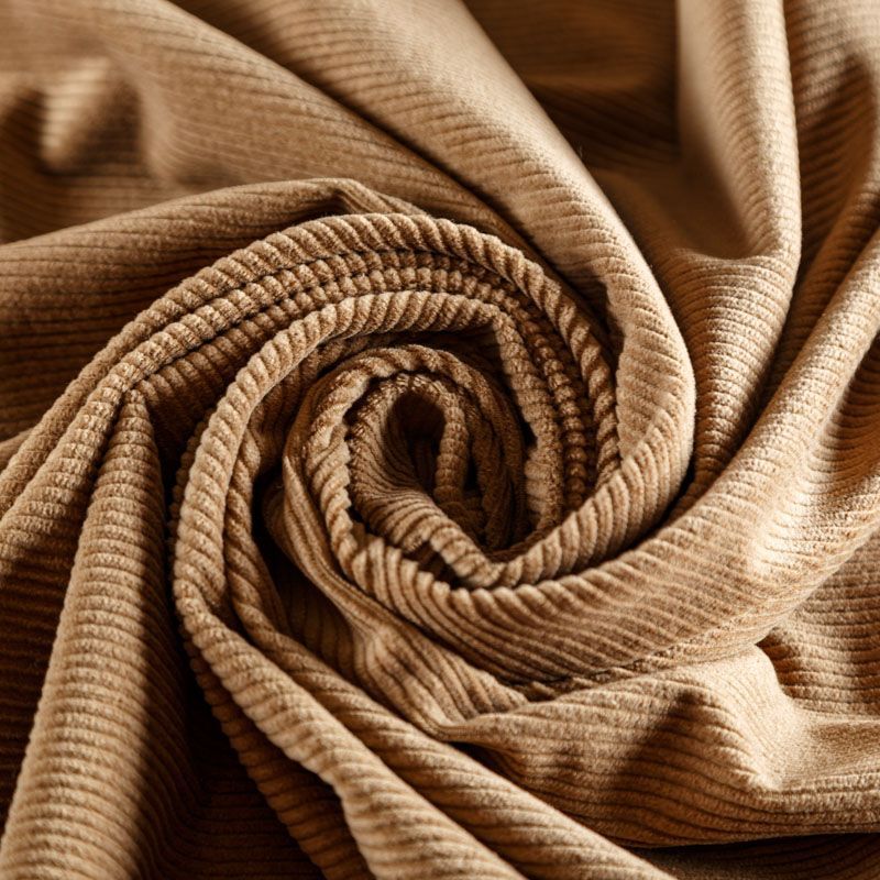 Итальянский хлопковый вельвет костюмно-плательной плотности коричневого оттенка. Ткань имеет матовую фактурную поверхность в рубчик средней ширины, ворс короткий, мягкий и приятный на ощупь. Тянется за счет эластана в составе, хорошо драпируется и держит форму. Прекрасный вариант для пошива костюма, юбки, широких брюк, шорт, комбинезона, жакета, куртки или тренча.