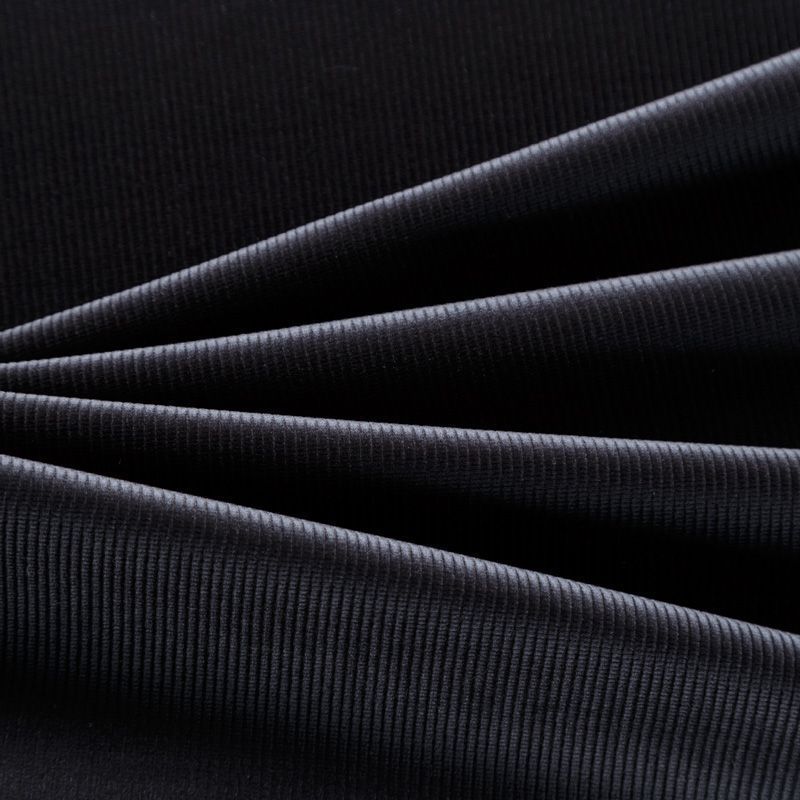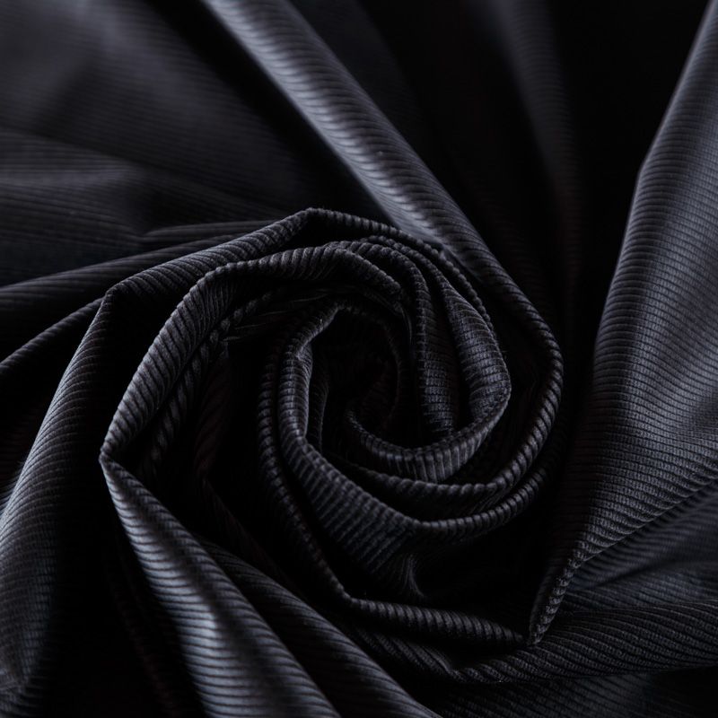 Итальянский костюмно-плательный вельвет из хлопка в черном оттенке. Очень приятный тактильно, поверхность бархатистая, рубчик средней ширины,  тянется за счет эластана в составе, не просвечивает. Подойдет для пошива костюма, платья, юбки, брюк, верхней одежды.