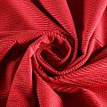Итальянский хлопковый вельвет костюмно-плательной плотности красного оттенка. Ткань имеет матовую фактурную поверхность в рубчик средней ширины, ворс короткий, мягкий и приятный на ощупь. Тянется за счет эластана в составе, хорошо драпируется и держит форму. Прекрасный вариант для пошива костюма, юбки, широких брюк, шорт, комбинезона, жакета, куртки или тренча.