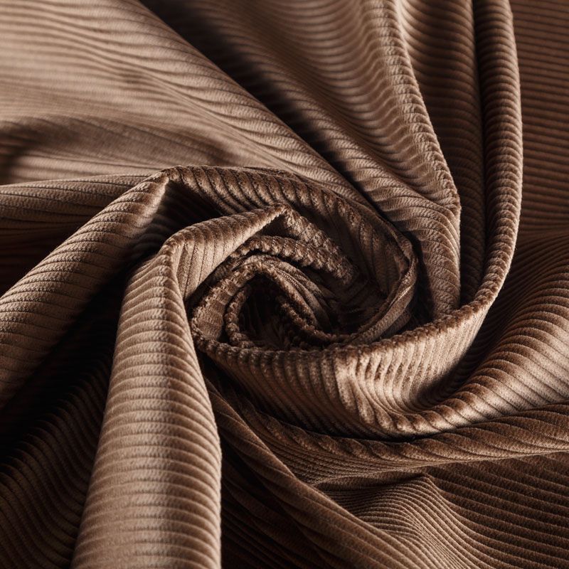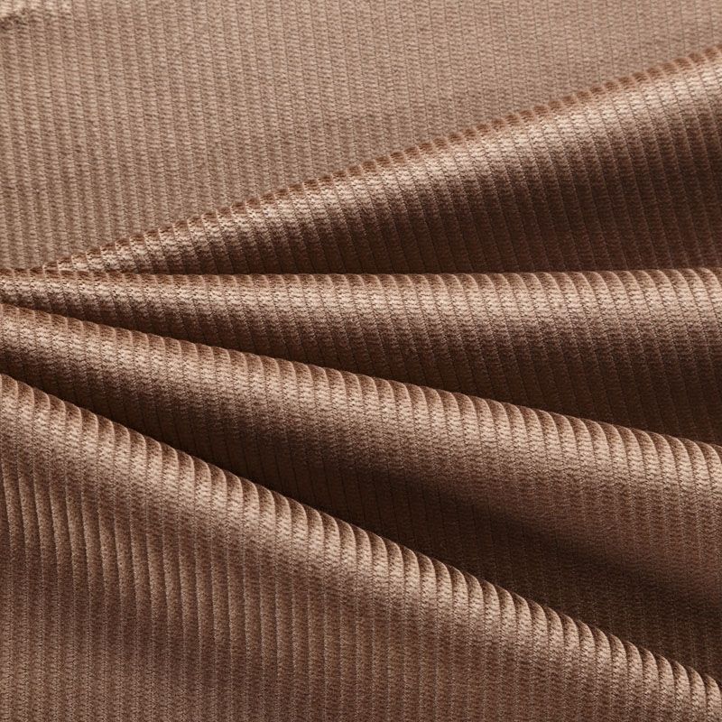 Итальянский хлопковый вельвет костюмно-плательной плотности коричневого оттенка. Ткань имеет матовую фактурную поверхность в тонкий рубчик, ворс короткий, мягкий и приятный на ощупь. Хорошо драпируется и держит форму. Прекрасный вариант для пошива костюма, юбки, широких брюк, шорт, комбинезона, жакета, куртки или тренча.
