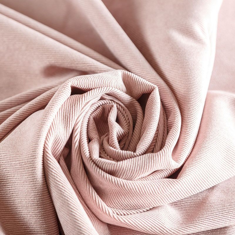 Костюмно-плательный микровельвет средней плотности. Очень приятный тактильно, мягкий, поверхность бархатистая, в тонкий рубчик, хорошо тянется за счет эластана в составе, не просвечивает. Подойдет для пошива костюма, платья, юбки, брюк, шорт, комбинезона, легкой куртки или жакета.