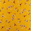 Итальянская жаккардовая вискоза шафранового оттенка с мелким цветочным принтом . Ткань тонкая, слегка просвечивает, отлично драпируется и струится, приятная на ощупь. Прекрасно подойдет для пошива платья, сарафана, топа, блузки, юбки, пижамного костюма.