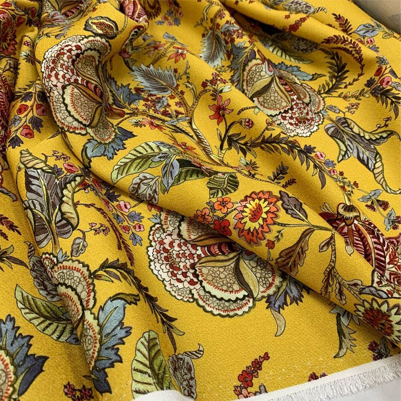 Вискоза 009-11698 шафрановый принтованный в Ухте
