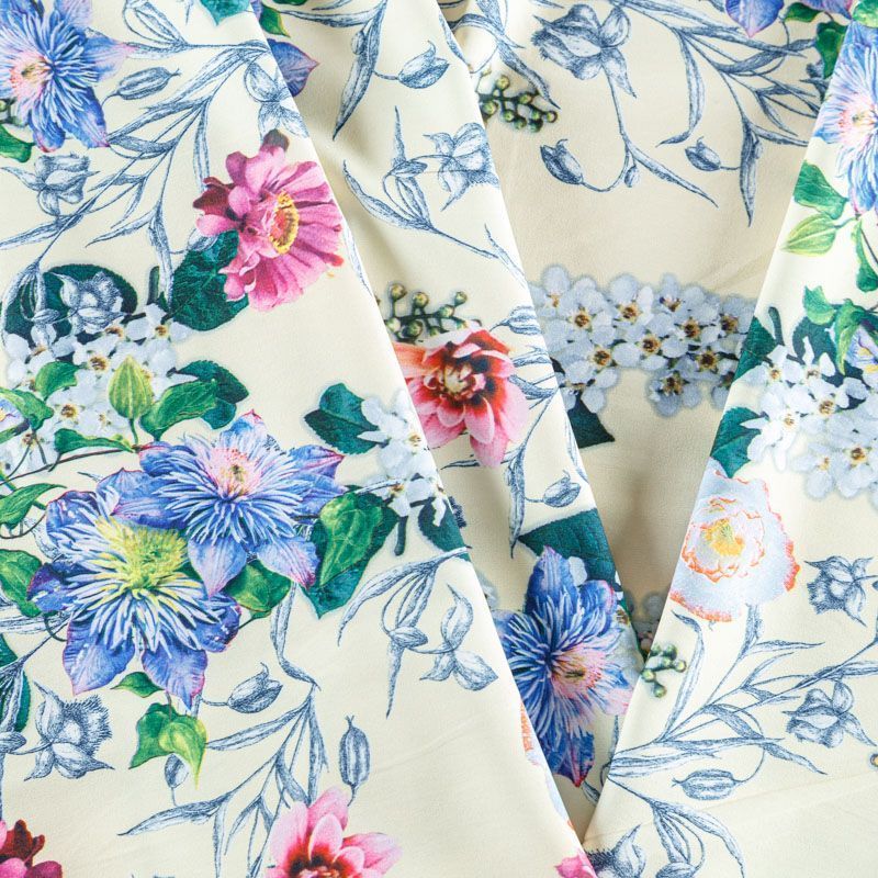 Это элегантная струящаяся ткань, которая превосходно драпируется, всегда изящно выглядит и остается легкой и воздушной,  имеет высокую прочность и большую износоустойчивость. Поверхность ткани матовая, гладкая и ровная, очень приятная на ощупь. Используется для пошива блуз, юбок, платьев, сарафанов, широких брюк.