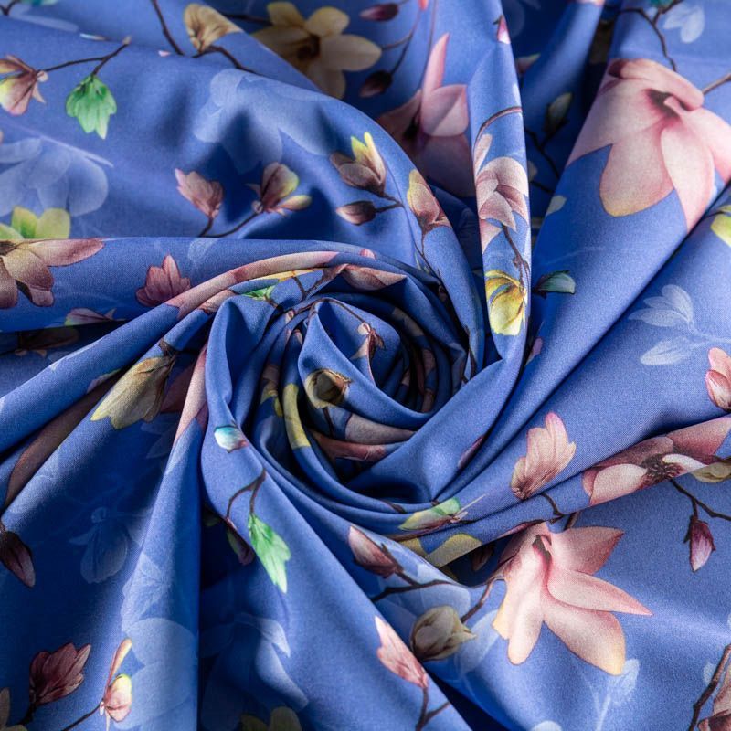 Легкая набивная ткань имеет высокую прочность, большую износоустойчивость. Ткань упругая, мягкая и хорошо драпируется, образует струящиеся складки. Идеально подойдет для пошива блуз, юбок, платьев, сарафанов.