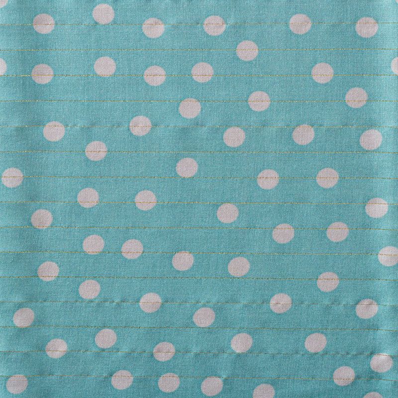 Итальянская плательно-блузочная вискоза в белый горох на мятно-бирюзовом фоне декорирована тонкой люрексовой нитью. Ткань очень пластичная, отлично драпируется и струится, мягкая и приятная на ощупь, не просвечивает. Прекрасно подойдет для пошива платья, топа, блузки, юбки.