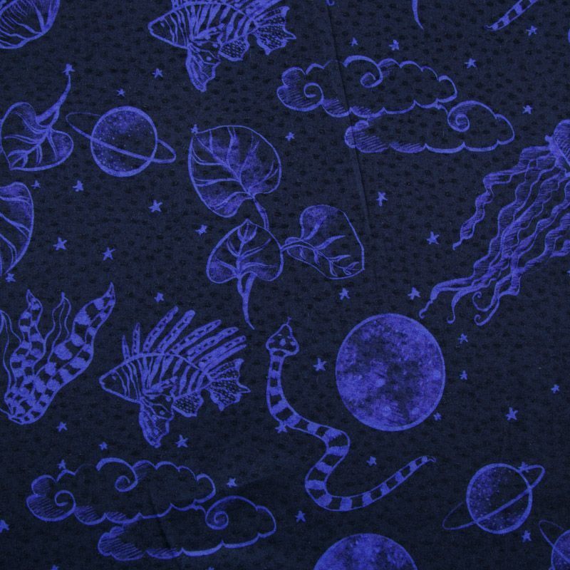 Вискоза жаккардовая 009-12337 синий космос принтованный в Ухте