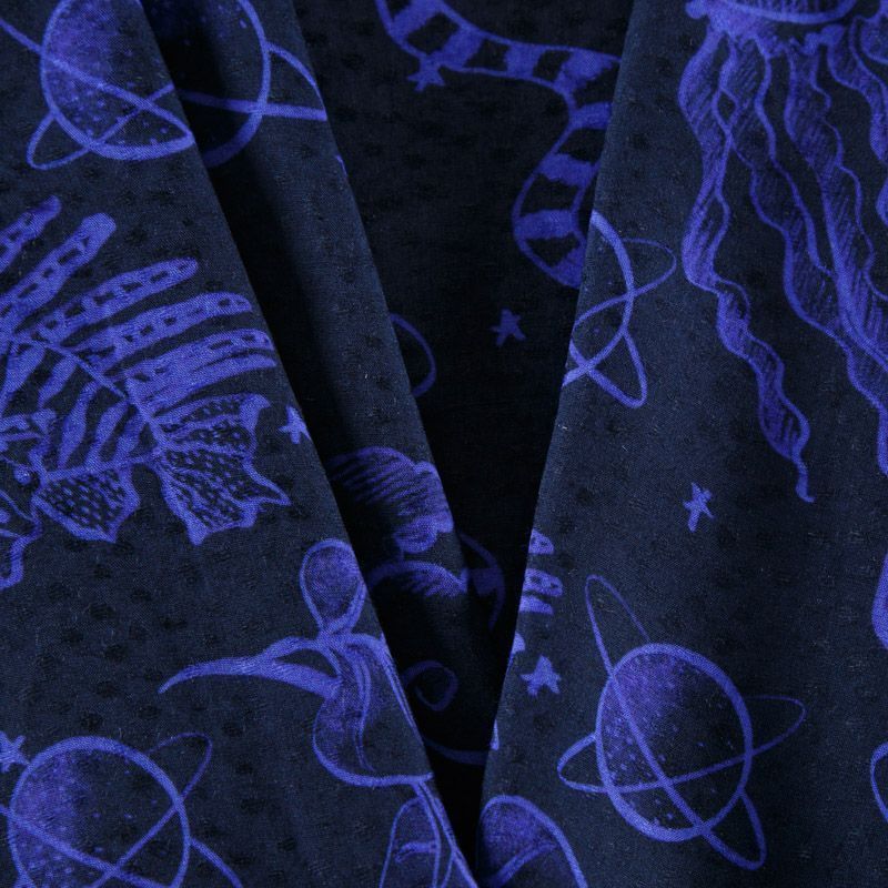 Вискоза жаккардовая 009-12337 синий космос принтованный