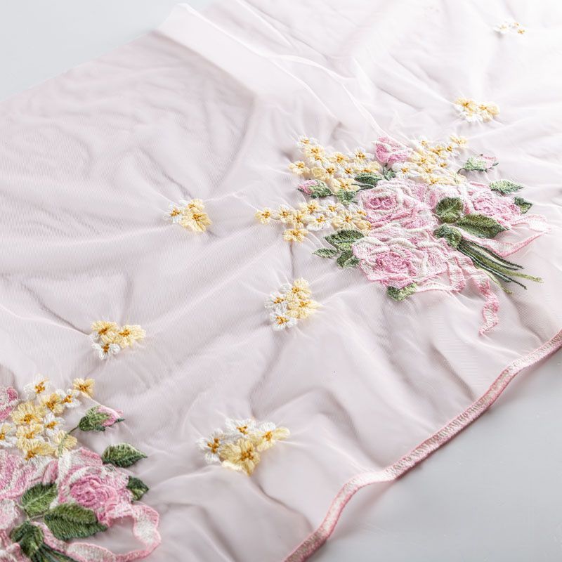 Вышивка на сетке Monnalisa высочайшего качества. Сетка пудрово-розового оттенка, мягкая, приятная на ощупь, отлично драпируется. Богатая объемная вышивка в виде роз выполнена идеально. Подойдет как для самостоятельного изделия: юбка, ярусное платье, так и для декорирования любых изделий: вставка в рукав, оборка и т.д.