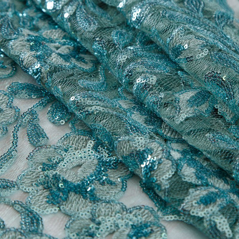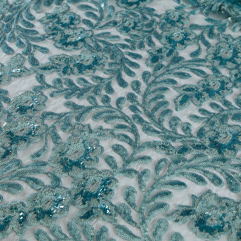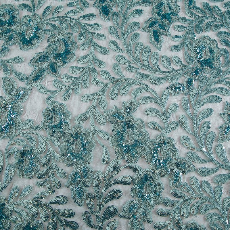 Вышивка с пайетками на сетке Armani 050-19131 морская волна в Ухте