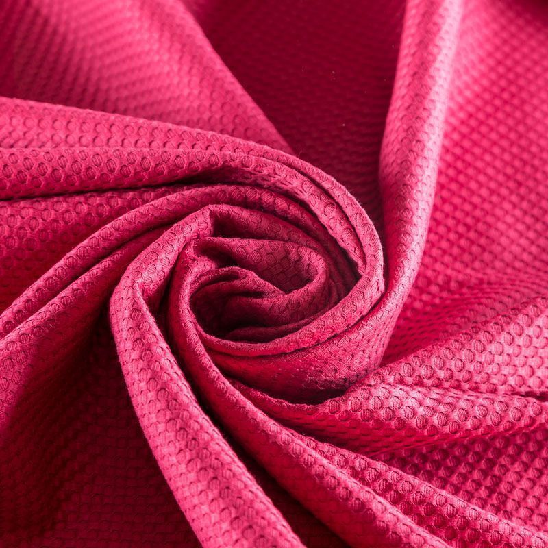 Итальянский хлопковый жаккард насыщенного оттенка фуксии с мелким орнаментом. Ткань легкая, но плотная, поверхность матовая и текстурная, хорошо драпируется и держит форму, тянется за счет эластана в составе, не просвечивает. Подойдет для пошива нарядных вечерних костюмов, корсетов, платьев-футляров, жакетов, топов, легких пальто, бомберов, юбок или шорт.