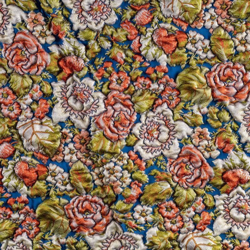 Итальянский жаккард с роскошным объемным цветочным узором, в яркой цветовой гамме. Ткань очень красивая, средней плотности, не тянется и не просвечивает, хорошо держит форму. Лицевая сторона с рельефным фактурным рисунком. Подойдет для пошива юбок, бомберов, летних пальто, жакетов, платьев различных силуэтов.